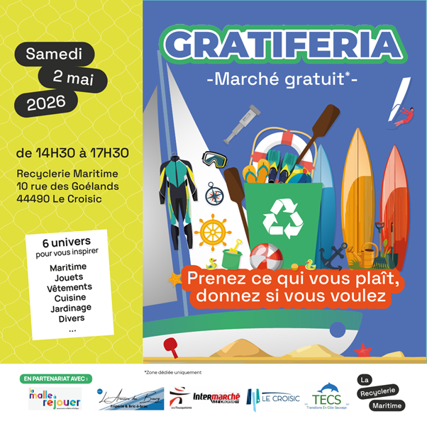 La Recyclerie Maritime accueille cet événement en partenariat avec TECS, Transition en Côte Sauvage, Le Bonheur des Bennes (Saint-Nazaire), L’Armoire du Bourg (Batz-sur-Mer) et La Ville du Croisic, partenaire de l’événement